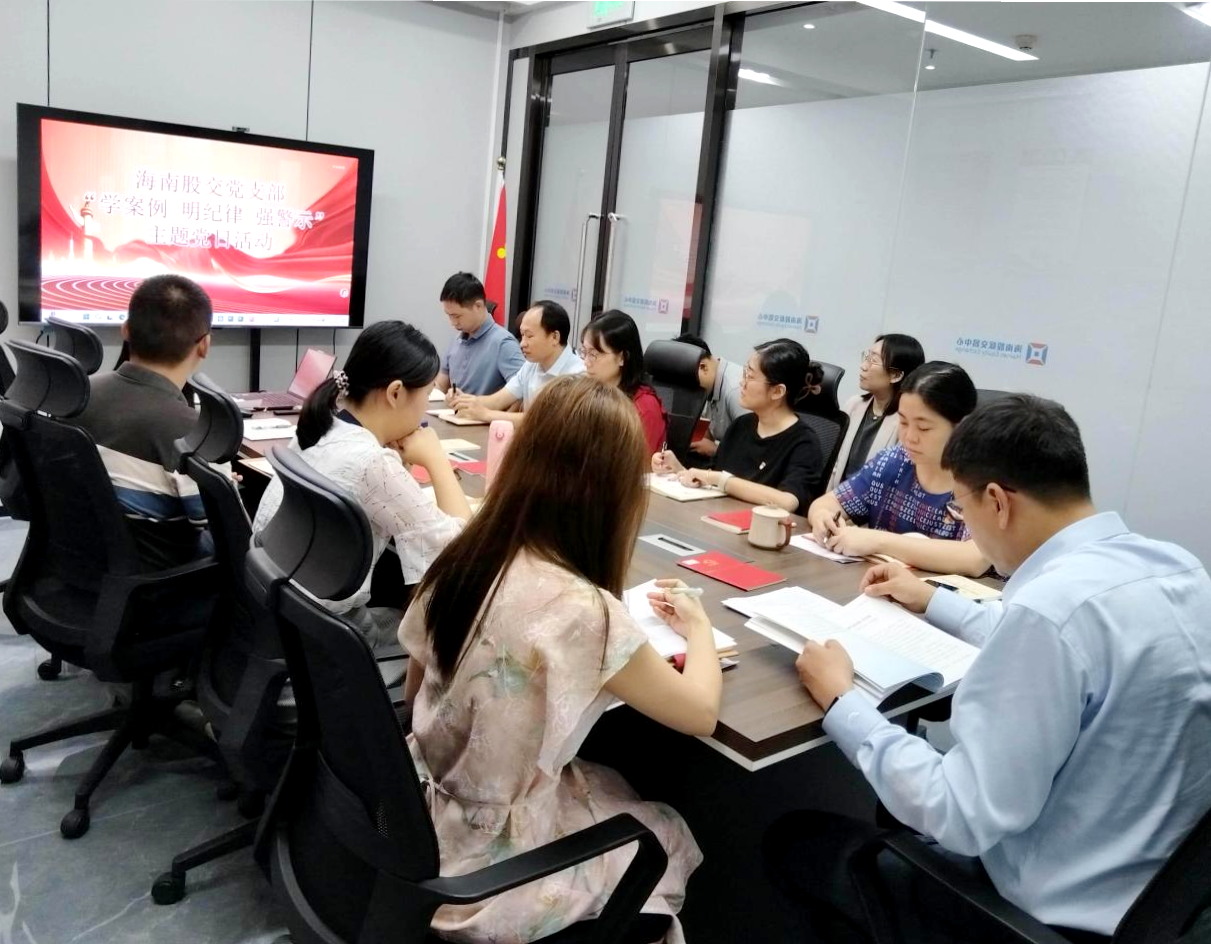 為深入貫徹落實習(xí)近平總書記關(guān)于全面從嚴(yán)治黨的重要指示精神,強(qiáng)化黨員干部紀(jì)律規(guī)矩意識,落實“清廉股交”建設(shè),近日,海南股交黨支部組織開展“學(xué)案例明紀(jì)律強(qiáng)警示”主題黨日活動。活動由黨支部書記、董事長朱磊主...